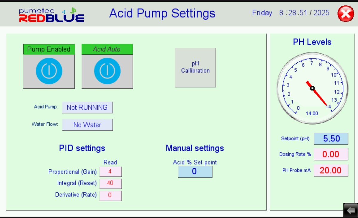 - RedBlue Acidtec control system and software